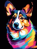 Corgi pop-art is een moderne artistieke stijl met levendig gekleurde portretten van corgi's met geometrische patronen. Deze speelse en opvallende kunst viert het geliefde ras met een leuke en eigentijdse twist.