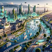 Vision of Vienna: The Confluence of Time and Innovation" is een adembenemende samensmelting van het keizerlijke verleden van Wenen en een visionaire toekomst. De traditionele architectuur van de stad, vertegenwoordigd door iconische gebouwen zoals het reuzenrad van Wenen, wordt in dit werk omringd door kristallen torens en drijvende…
