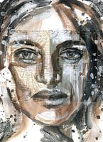 Geschilderd gezicht van een vrouw / collage in zwart/wit en warme tinten.