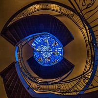 Wenteltrap in het Amrath hotel Frans Hals in het centrum van Haarlem. Zo'n spiraal blijft altijd fascineren, zeker met de complementaire kleuren diepblauw en goudgeel.