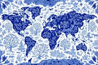 Wereld kaart in Delfts blauw van Maps Are Art