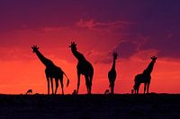De kleurenpracht van deze zonsondergang in de Masai Mara was op zich al magisch, maar de entourage van de vier giraffen met de vier impala's welke allen los staan van de giraffen maakten deze bijzondere avond compleet en om nooit te vergeten.