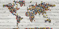 Deze digitaal gerenderde wereldkaart is opgebouwd uit 514 kroonkurken van 54 verschillende bieren.