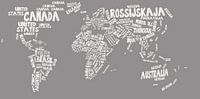 Typografische kaart van de wereld. De namen van de landen zijn weergegeven in de eigen taal/talen.