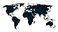 Deze wereldkaart is in een strakke stijl vormgegeven in een krachtige zwarte kleur.