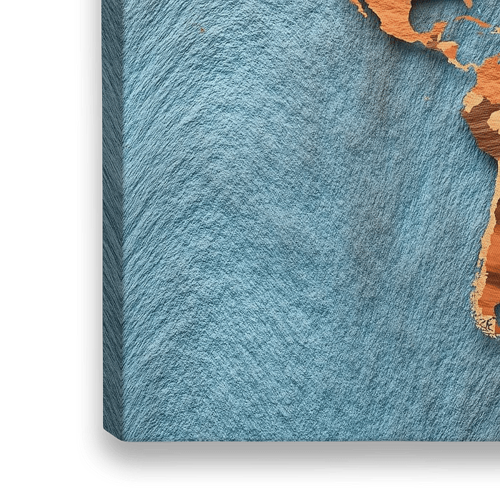 Koop dit digital art kunstwerk Wereldkaart in bruintinten op blauw van Arjen Roos als reproductie op canvas, aluminium dibond, (ingelijste) fotoprint, behang en ArtFrame, op maat geprint in Fine-Art kwaliteit.