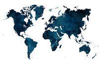 Wereldkaart in donker blauwe waterverf kleur met witte achtergrond van KB Design & Photography (Karen Brouwer)