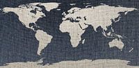 Een decoratieve wereldkaart van licht- en donkerkleurig jute.