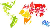 Leuke afbeelding van de Aarde met werelddelen. Onze planeet met tekeningen voor de continenten, Amerika, Europa, Afrika, Azie en Australie.