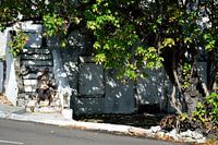Terwijl we rondliepen in Nassau op de Bahama's zagen we deze oude man op deze trappen zitten om de kost te verdienen door een stuk hout te bewerken tot iets moois.