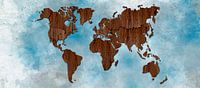 Kleurrijke Wereldkaart met gebruik van digitale houtstructuren.