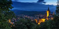 Wernigerode en kasteel op het blauwe uur