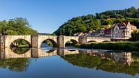 Deze oude stenen brug overspant hier de gladde Werra net voordat de rivier de Fulda treft.