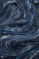 Deze afbeelding toont een abstracte voorstelling van sterrenstelsels in donkerblauwe tinten. De vloeiende, wervelende patronen creëren een krachtige verbinding tussen orde en chaos. De afbeelding is ideaal voor kamers die een sfeer van mysterie en elegantie uitstralen.