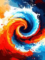 Wervelingen van abstracte contrasten: Warme en koude kleurstromen verenigen zich in vloeiende golven 3 van 3 van AidasignArt