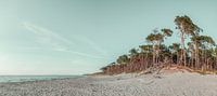 Uitzicht op het Darß-bos, op het strand. Avondsfeer op het weststrand, Oostzee.