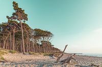 Uitzicht op het Darß-bos, op het strand. Avondsfeer op het weststrand, Oostzee.