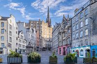 Victoria Street in Edinburgh werd gebouwd tussen 1829 en 1834. Tegenwoordig is de straat met zijn zachte bocht, de Westboog, en kleurrijke etalages een charmante plek in de Oude Stad. Uitzicht vanaf de Grassmarket naar de West Bow.