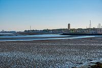 Het is eb aan het worden op Terschelling. Het water is al een stuk weg getrokken. Op de achtergrond het prachtige dorp West-Terschelling met de Brandaris als hoogtepunt.