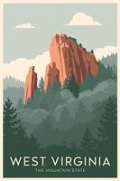 De rode rots rijst majestueus op in het hart van een groene achtergrond, omlijst door glooiende heuvels en bewolkte luchten. Dit kunstwerk straalt een warme, uitnodigende sfeer uit en is perfect voor de woonkamer, waar het verhalen van avontuur en natuurinspiratie vertelt en elke kamer vult met een gevoel van vrijheid.