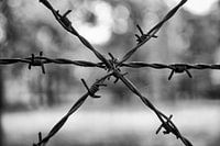 Westerbork Drenthe The Netherlands Camp (Kamp, Durchgangslager) Westerbork. Transit camp used to send Dutch onwards to concentration camps. Rusty barbed wire surrounding the camp.