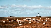 Weg van de gebruikelijke en reeds bekende perspectieven, het herkenningspunt van Eiderstedt, de Westerhever vuurtoren. De foto heeft de kleurindruk van een oude Kodak-analoge film.