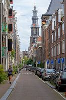 Vanuit de Bloemstraat in het hartje van de Jordaan heeft men een prachtig zicht op de Westerkerk met haar machtige Westertoren die boven alles uit steekt. Dit werk is in een aantal beeldvarianten als wel in kleur of zwartwit te verkrijgen.