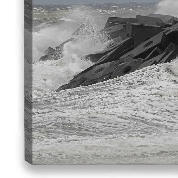 Grote golven beuken op los bij de Zuidelijke Havenhoofd van Scheveningen.