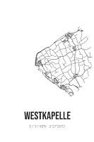 Zwart-witte landkaart, stratenplan of plattegrond van Westkapelle. Westkapelle is gelegen in de gemeente Veere, provincie Zeeland. Op de stadskaart zijn alle openbare wegen in Westkapelle opgenomen. Verder is de kaart voorzien van de coördinaten van het centrum van Westkapelle.