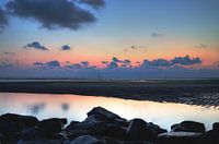 Deze longexposure opname heb ik na zonsondergang gemaakt op het strand van Westkapelle, Zeeland, Nederland. Er waren mooie kleuren zichtbaar in de lucht en door de langere sluitertijd is de beweging van de wolken zichtbaar, de structuren in het natte zand waren ook te zien. De rotsblokken op de voorgrond en het stilstaande zeewater met de reflectie van de wolken maakte de foto compleet en zorgde voor een sfeervol beeld.