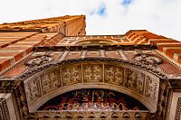 Westminster Cathedral 03 - Blick aus der Froschperspektive nach oben an einer der Eingangspforten von der Westminster Cathedral, Ambrosden Avenue SW1 in London