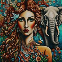Dit schilderij is mijn kijk op de delicate harmonie tussen de menselijke geest en de natuurlijke wereld. Ik heb dit vastgelegd door middel van het portret van een vrouw wier blik zowel kracht als verwondering uitstraalt. Om haar heen staan drie sleutelsymbolen die laten zien hoe alles met elkaar verbonden is.