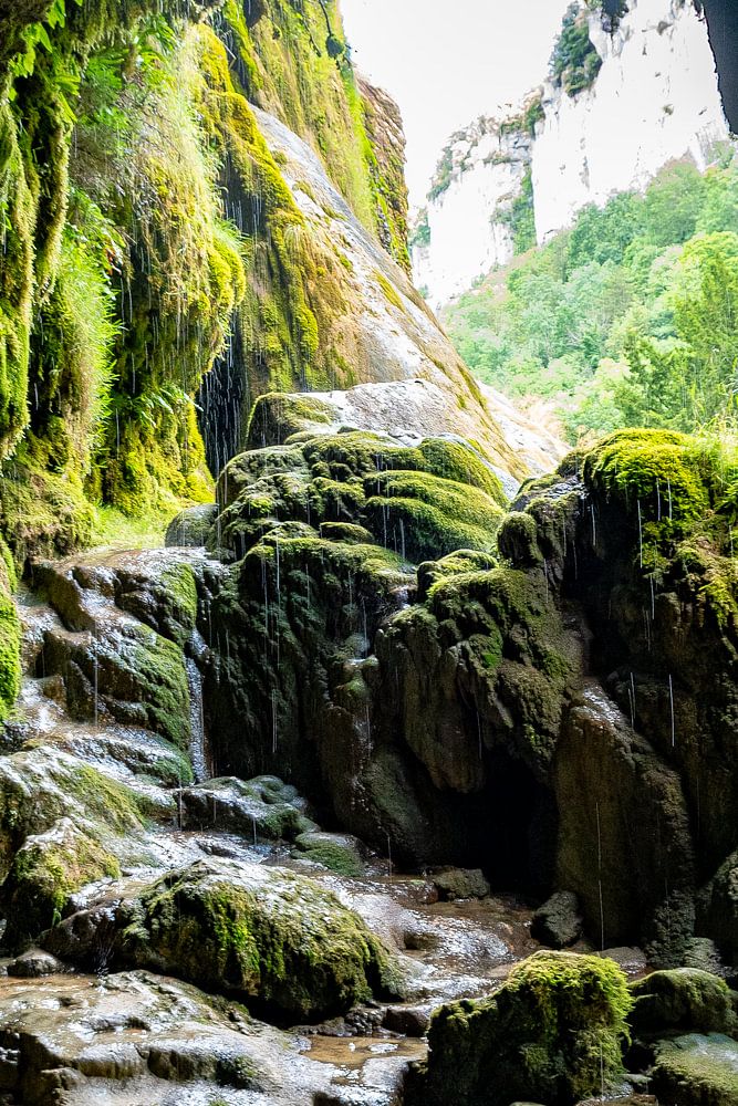 Een rustig tafereel met mooie rotsformaties en prachtige groene kleuren