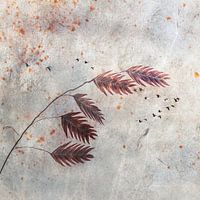 Een eenvoudige graspluim, verwerkt in een montage geeft een sterk minimalistisch resultaat dat doet denken aan een groots landschap. Eenvoud siert en geeft je leef- of werkruimte net dat ietsje meer zonder te overheersen.