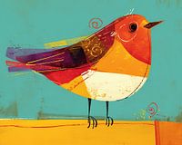 Details: roodborstje, vogel, schilderij, kunst, abstract, kleurrijk, natuur, decoratief, modern, levendig
