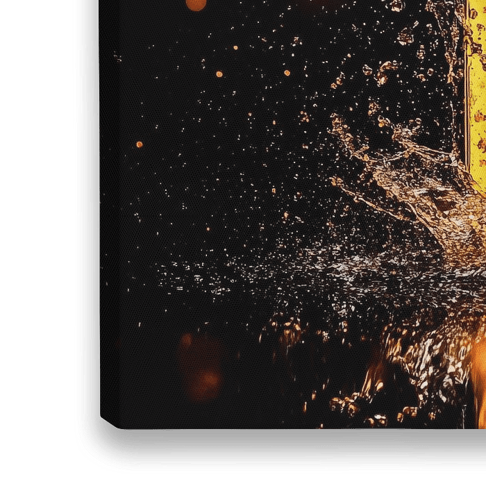 Whiskey fles splash schilderij die een elegante en luxe toevoeging zal zijn aan elke ruimte. Met zijn unieke en stijlvolle uitstraling is het een ware eyecatcher. De schitterende minimale kleuren en het bijzondere ontwerp maken dit kunstwerk 100% uniek en origineel. Het is de perfecte fotoprint om je interieur helemaal af te maken.