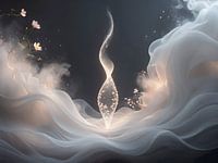 Whisper of Goddess Echo verbeeldt een moment van bijna-onhoorbare aanwezigheid. Het werk spreekt niet in vorm of gestalte, maar in fluistering — een verticale beweging van licht en adem die zich voorzichtig losmaakt uit de stilte.