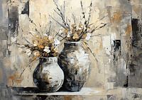 Details: stilleven, Japandi, vazen, bloemen, flora, beige, zwart, wit, bruin