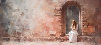 Whispered Parchment Solace - abstract vrouw in wit, lezende vrouw, pastelkleurig