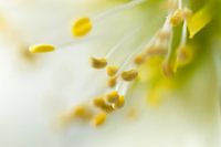 Macro-opname van de stampers en of meeldraden van een bloem. Veraassend teer, zacht en zonnig. Decoratief voor aan uw muur. Lijkt wel op ontkiemd zaad, taugé ofzo. Zacht van kleur.