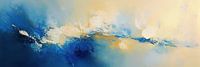 Details: abstract, schilderij, zee, golven, blauw, wit, geel, kunst, modern, canvas