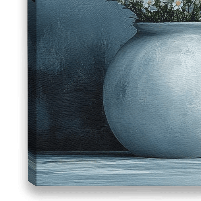 Details: stilleven, bloemen, wilde bloemen, vazen, modern, minimalistisch, rustiek, elegant, serene, blauw