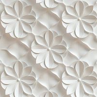 Afbeelding in 3d met diepte en schaduw van witte bloemen op een witte achtergrond. De suggestie wordt gewerkt dat de bloemen los van de achtergrond liggen. Mooi wit kleurgebruik in diverse nuances. Subtiel. Passend bij diverse stijlen en trends, waaronder modern abstract, wit, natuurlijk, graphics. Artist: Bianca ter Riet