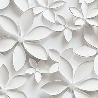 Afbeelding in 3d met diepte en schaduw van witte bloemen op een witte achtergrond. De suggestie wordt gewerkt dat de bloemen los van de achtergrond liggen. Mooi wit kleurgebruik in diverse nuances. Subtiel. Passend bij diverse stijlen en trends, waaronder modern abstract, wit, natuurlijk. Artist: Bianca ter Riet