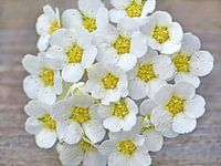 Kleine witte sierlijke bloemetjes tegen een achtergrond van hout. Fijntjes en vrouwelijk; zo kun je dit beeld het best omschrijven. Zachtaardige tinten maken het werk af.... Dit beeld is licht kunstzinnig bewerkt zonder verlies van natuurlijk karakter.