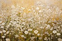 Een kleurrijk digitaal schilderij van een veld met witte bloemen. Het werk geeft een warme en klassieke uitstraling van uw interieur!