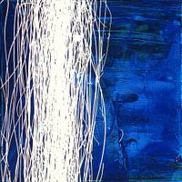 Blauw / wit acryl abstract schilderij, handgeschilderd, op canvas. Het stuk is met verschillende technieken opgezet.