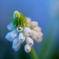 Muscari White Magic is een prachtig mooi wit "blauw"druifje. Teer en speels tussen het groen.
