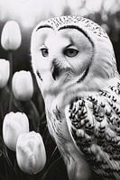Koop dit vogel kunstwerk White Owl and Tulips in Monochrome van Art & Soul Creations als print op canvas, aluminium dibond, (ingelijste) fotoprint, behang en ArtFrame. Voor jou op maat geprint in Fine-Art kwaliteit.