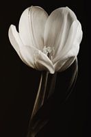 Een zwart wit macro van een witte bloeiende tulp.